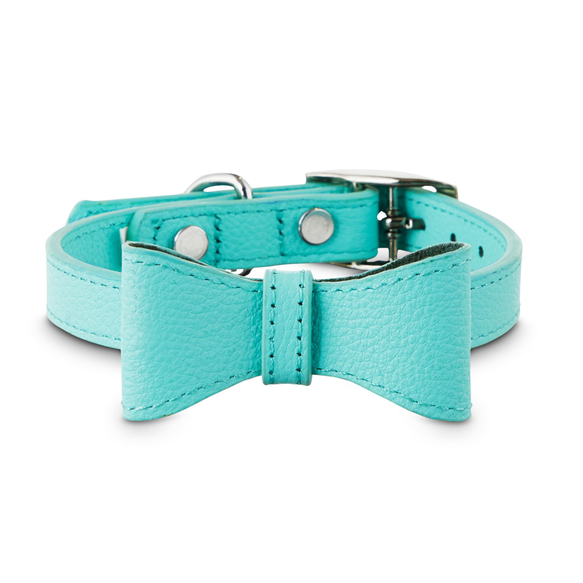 BOND & CO. Teal Leather Bow Tie Dog Collar, XSmall/Small Petco